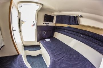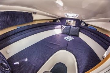 Veľmi pekný zachovalý interiér s komplet matracmi a kobercami. Opaľovací matrac na prednej kajute, rozkladacie opaľovacie 2 lôžko v kokpite.