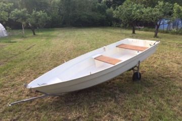 Prodám laminátovou loď, délka 3,6 šířka 1,35 m. Loď je nepotopitelná díky vzduchové kapse ve špici. Vhodná pro rekreaci a rybolov max. tří lidí. Loď je vybavena držákem na motor, držákem na prut, kladkou na kotvu, tažnými oky. Součástí lodě je vozík na bantamech, díky kterému lze loď přepravovat za čtyřkolkou, traktůrkem, autem. Podvozek je konstruovaný tak, aby šlo loď pohodlně spouštět a vytahovat z vody z velmi prudkého srázu, pomocí navijáku. Loď se i s vozíkem spustí do vody a vytáhne se aretační kolík. Při vytahování se jen vozík, který plave, zasune pod loď, zajistí se kolíkem a pomocí navijáku ji lze pohodlně vytáhnout.