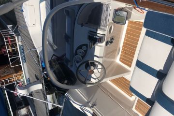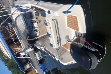rv. lodě a motoru 2004. Technický stav A1 + sem tam nějaká oděrka... loď není přeci jenom nejmladší tak si zaslouží pár šrámů :-) Řízení je hydraulické, 60l nádrž, bimini, minibar, 2 možnosti interiéru - ležení / sezení, bilge pumpa, budíky Mercury SmartCraft, Garmin fishfinder, auto zásuvka 12V, hasící přístroj, spousta úložného prostoru, krycí plachta.