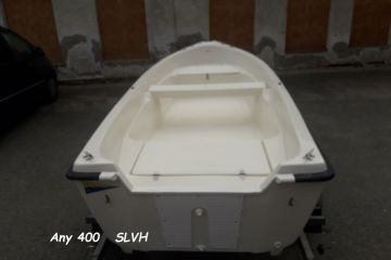Motorový člun A 400 SLVH A 400 SLVH je laminátový dvouplášťový nepotopitelný a velice elegantní člun vhodný pro rekreaci i rybolov. Délka 400 cm, šířka 150 cm, výška boku 60 cm váha 120 Kg, Posádka 4 osoby, motor max.15Hp krátká noha .