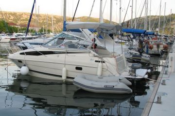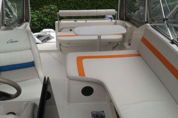 Bayliner Cierra 2355 ve velmi zachovalem stavu r.v 1995. Motor Mercruiser 5.7L V8 - 260Hp, Z-nahon Bravo duopropp. Vse v TOP stavu. Vybava lode - radio, vysilacka, bojler s ohrevem od motoru/220V, rozvod pitna a uzitkova voda, persenik, bimini dlouhe zastreseni, elektricky kotevni navijak, prodlouzene badeplato, zachod se septikem, upravene vrchni sezeni kvuli zvetseni prostoru. Puvodni sezeni mam, kdyby chtel nekdo zase vratit do original stavu. Spani pro 4 lidi, lod typovana pro 10 lidi. Podvalnik dvouosa na 2700kg. Vse na CZ dokladech.