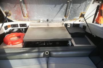 Výbava: sprcha, TV, teplovzdušné topení Webasto, měnič 240V/4KWh, lednice kompresorová, led podsvícení, sonar, chemické WC, břehová přípojka. Nové biminy, přepravní plachta, vlek po STK.