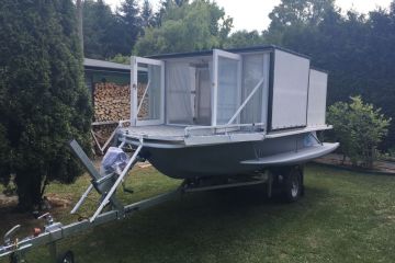 Loď pro dvě osoby, vhodné i na přespání.