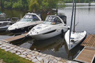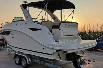 Prodám krásnou motorovou jachtu SeaRay Sundancer 260 (výroba USA), VČETNĚ ZAPLACENÉHO KOTVÍCÍHO MÍSTA NA VLTAVĚ V YACHT CLUBU CERE, r.v. 2014, 8 m dlouhá, 2,59 m široká, skvěle vybavená s pravidelným servisem, připravená na sezónu, v zimě garážovaná v temperované hale. Motor Mercruiser 8V, 5,7 l, 350 koní, přední příčný propeler s řízením joystickem, přední silný otočný reflektor s řízením joystickem, kotva s elektrickým navijákem, zadní klapky, vakuová toaleta, sprchový kout, nádrž na čistou vodu, kuchyňka s dřezem a sporákem, klimatizace a topení, spaní ve dvou podpalubích pro 3 - 4 osoby (dle jejich vzrůstu), televize, audio souprava, navigace Lowrance s mapami, vysílačka Lowrance, sunbed na přední palubě, zadní velké baden plato, otočná sedačka kapitána, na palubě stolek a sezení pro 8 osob, letní bimini, převozní bimini i kompletní prosklené zimní bimini, mnoho fendrů a jiného příslušenství. S lodí prodávám i vlek určený pro tuto loď, nutno auto se závěsem na 3500 kg. Osobní prohlídka možná na Praze východ. Dohoda jistá. Cena k jednání 2.190.000,-