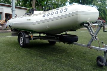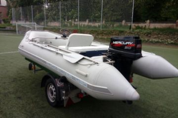Prodám gumový člun QUICKSILVER 430 s dřevěnou podlážkou, motor Mercury 30 2t. Délka 4,3 metru.
