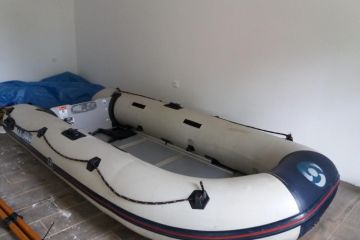 Nafukovací člun YAM 330 S s pevnou skládací podlahou. Odolný skládací člun, s možností osazení motoru až 15HP. Podlaha umožňuje použití řídící konzole a dodává člunu patřičnou pevnost. K vybavení patří pádla, vlečné oka, nafukovací kýl. Člun pojme až 5 osob, maximální zatížení 500 kg, délka 330cm. Registrované v ČR. Lze dodat i s lodním motorem a vlekem pro převoz v nafouknutém stavu. Nabídka je bez vybavení viditelném na fotu. Cena za člun je 13900,- Kč. Tel.: 00420 608 070 180, seckap@seznam.cz