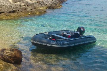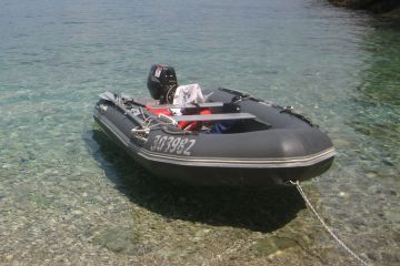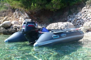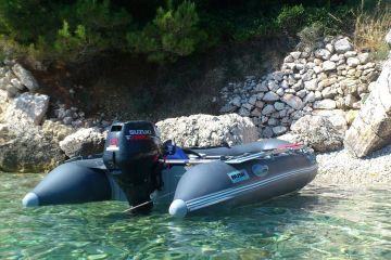 Prodám gumový nafukovací člun Skate 350 Bush, r.v. 2012, skládací dno+nafukovací kýl, motor suzuki 15HP 4takt, r.v. 2006, přihlášený na SPS Přerov.