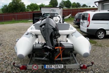 nádrž 55L + přenosná nádrž 12L a mnoho dalšího. Individuální člun na zakázku, vše r.v.2019, v provozu od 03/2020. Vše v záruce a v perfektním stavu, motor najel pouze 12 MTH. Záruka na člun do 01/2025, záruka na motor min.do 01/2022 a dále dle servisního plánu (možno až do 01/2025), záruka na lodní přívěs a ostatní příslušenství 2 roky (do 01/2022). PC 554 000,- Kč. Více info na tel.nebo email, k vidění na prodejně lodí v Divišově po předchozí domluvě, k odběru ihned. Doporučuji vidět.
