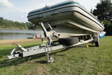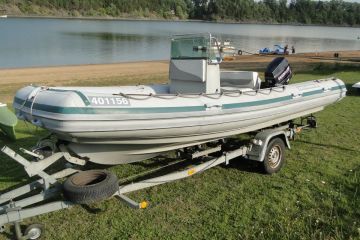 Velmi prostorný (8 osob) a rychlý člun s mnoha úložnými prostory.Člun má novou T.K. do roku 2025.K člunu je bržděný přepravní vlek,též s novou T.K.Možnost předvedení na vodě .