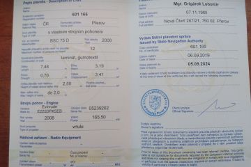 Domovský přístav je Přerov, platnost osvědčení do 2024.