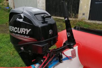Prodám nafukovací člun, 390 cm, Al RIB dno, motor Mercury 25, vlek. Jenom jako komplet. České papíry, 1 rok v provozu.