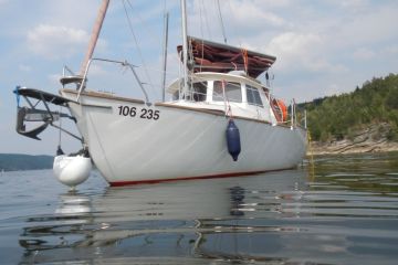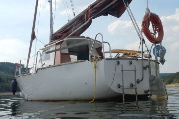 Prodám kajutovou placetnici HABER 560. Loď byla vyrobena v polské loděnici Yacht-service (http://haber-yachts.com/) v roce 2000. Jedná se o podobnou koncepci jako užívají současné modely 660, tedy o ploutvokýlovou plachetnici s gaflovým oplachtěním. Velkou výhodou je, že i přes velmi kompaktní velikost má loď v kajutě stojnou výšku. Na loď není třeba oprávnění vůdce malého plavidla!