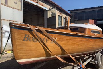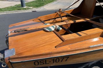 Nabízím celodřevěnou plachtenici - jolový křižník. Délka lodi 6,5m, hmotnost 500 kg., mahagonvé dřevo. Stěžeň a dřevěné přední ráhno v novém laku. S dakron plachtami komplet dřevěnou takeláží. Je to opravdu krásný exemplář, potřebuje jen trochu opravit žebra, obšívky, utěsnění pod čárou ponoru a trup (poškodil se při převozu, viz. foto). Lodní vlek není součástí prodeje. V případě zájmu si prosím vyžádejte další informace prostřednictvím sms na tel. 704 072 461. Děkuji.