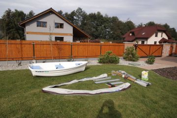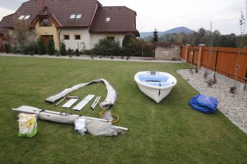 oplachtění varianta "performance" - dvoudílný stěžeň, dakronová hlavní plachta a kosatka, kormidlo, veškeré kování a lanoví,
