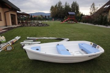 Při osazení originální nafukovací tubou po obvodu je téměř nemožné loď převrátit, vhodné i k rybaření.