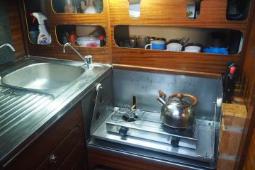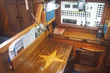 stavu, paluba teak, nová baterie, automatická námořní nabíječka 30A, solár