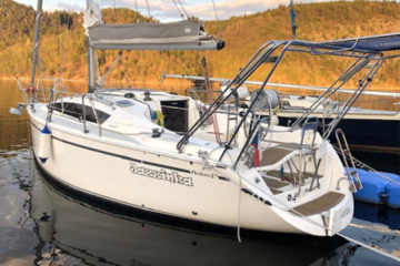 Phobos 27 - moderní kajutová plachetnice Vychází z nadčasového designu s charakteristickou dlouhou linií oken. Tato loď se pyšní bohatou výbavou, vestavěným motorem a přívěsem v ceně. rok výroby 2011 délka 8,09m šířka 2,86m ponor 1,40m, sklopný kýl pohon: vestavěný motor SOLE MINI DIESEL 17, r.v. 2014, výkon 11,80kW přívěs: 3500kg počet osob na plavidle: 5-8 Výbava této plachetnice: kuchyňka: nerezový dřez, teplá/studená voda, lednice s přístupem shora, plynový vařič - dvouplotýnka (P/B) koupelna: sprcha, umyvadlo, teplá/studená voda, záchod mořský (mechanický) salon: rozkládací dřevěný stůl, po obou stranách lavice, k lavicím snadno instalovatelné nástavce (včetně polstrování), rozšiřující na široká lůžka po obou stranách stolu dostatek úložných prostor nad i pod lavicemi šedomodré textilní polstrování ve velmi zachovalém stavu, polštářky s logem led osvětlení (přímé i nepřímé) přední kajuta: otevřená do salonu, lůžko do "V" zadní kajuta: otevřená do salonu, lůžko do "L" technická výbava: bojler na teplou vodu rozvod el. 220V rozvod el. 12V přepěťová ochrana rádio/CD, reproduktory v salonu i v kokpitu vpředu kotva na vrátku (ruční) vzadu přídavná sklopná kotva na laně s bubínkem kokpit/paluba: kormidlo, na kormidelním sloupku přístrojový panel paluba a sedačky kryty napodobeninou teaku polstrování na lavice v kokpitu demontovatelný plastový stolek kočárek skládací bimini badeplato se schůdky do vody (nerez, dřevěné nášlapy), u schůdků sprcha fendry 4ks nová lana vázací (2020) a otěže k přední plachtě (2021) na přídi dřevěné sedátko s nerezovými skládacími schůdky do vody plachty: sklopný stěžeň hlavní plachta klasická, s refy a spírami gena rolovací na předním pevném stěhu s rolfokem genakr na samostatném stěhu (ocelové lanko) s nezávislým rolfokem elektronika: kompas, windmetr, hloubkoměr, autopilot solární panel na zadní nástavbě 2 baterie (2017) Odpočet DPH není možný. Prodej přímo od majitele.