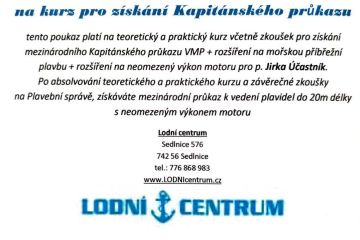 Darujte jmenný poukaz ke kurzům pro získání Kapitánského průkazu potřebného k vedení plavidel. Spolu s poukazem dostanete i učební materiály.