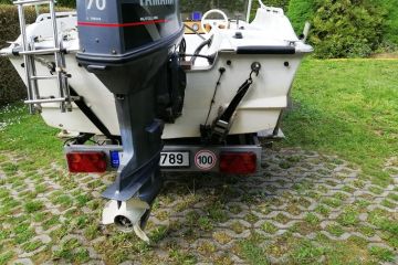 Motorový člun má mezinárodní TP a TK do roku 2012. Má el. startér, ovládání od volantu, chod vpřed i vzad. Má sonar, přepravní plachtu, přepravní kryt motoru, letní stříšku. 4 místa a možnost lůžkové úpravy pro 2 osoby. Přední nádrž 80 l, zadní 20 l. Přívěs možné uzamknout, je po TK. Při rychlém jednání sleva možná. Další foto možno zaslat. 139.500 Kč.