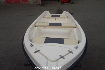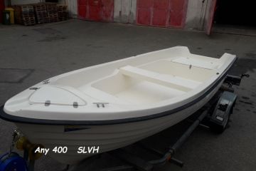Motorový člun A 400 SLVH A 400 SLVH je laminátový dvouplášťový nepotopitelný a velice elegantní člun vhodný pro rekreaci i rybolov. Délka 400 cm, šířka 150 cm, výška boku 60 cm váha 120 Kg, Posádka 4 osoby, motor max.15Hp krátká noha .