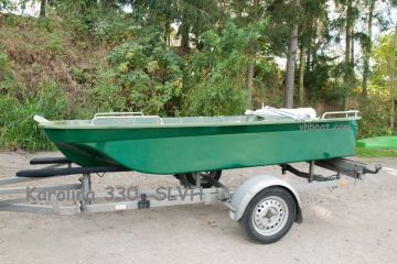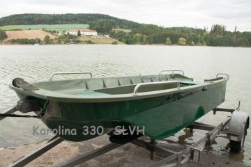 Laminátový člun Karolina 330 je dvouplášťová pramice, nová se zárukou s širokým dnem, stabilní, pro uložení věcí v suchu má dvě schránky, 1 ks lavička - variabilní umístění, uvazovací oko na přídi. Délka: 335 cm. Šířka: 125 cm, Výška boku 46 cm, Váha: 58 kg. Pro2-3 osoby . Dá se převážet na střeše auta. Pro motor do 5 Hp. Záruka 2 roky. Po domluvě rozvoz po celé ČR a SR.