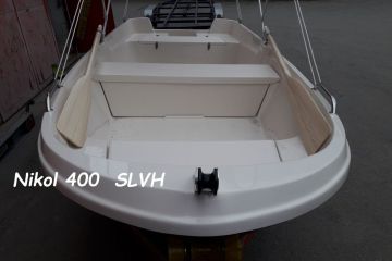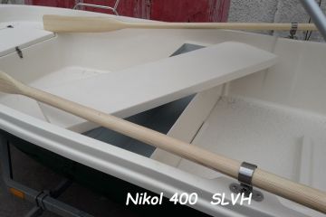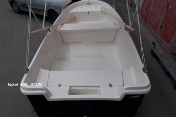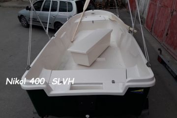 Laminátový, nový, dvouplášťový člun Nikol 400 je široký, stabilní člun s přídí do špice a širokým dnem. V kokpitu má člun pod sezením na přídi a na zádi schránky pro uložení věcí v suchu. Střední lavičku dělá odnimatelný kontejner, který se dá rovněž použít pro uložení věcí, anebo může rybářům posloužit pro nástražné, anebo ulovené ryby ve vodě. Při jeho vyndání vznikne v jeho kokpitu velký prostor, který využívají rybáři také k přespání.
