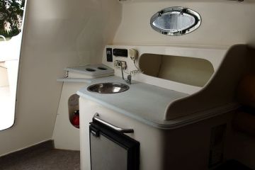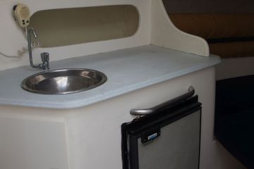 kajuta spaní pro 3 osoby, koupelna, keramické WC, kuchyn, kompresor lednice, bimini, elektrická kotva, lana,fendry, Sonar, opalovací plato, nerez doplnky