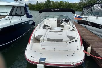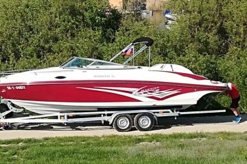 RINKER 246, r.v . 2012, Prvý vlastník, pravidelne servisovaná, 5,0 MPI Bravo III, nový príves, HD Sonar Humminbird so SI a DI, 2x baterka 100Ah, fendre, lana, elektrický kotevný naviják, 2 x kotva, pomocný motor Mercury 2,5 HP, prevádzkovaná iba na sladkej vode, kompletne oplachtovanie, bimini top, prepravná pachta,