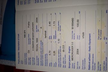 REGAL 1800 s vlastním strojním pohonem, rok výroby 2004, laminát, délka 5,7m, šířka 2,4 m, ponor 0,35m, strojní pohon MERCRUISER 3.0, vrtule, výkon 100kW. K dispozici i přepravní vlek. (možno odkoupit za 20.000,-Kč)