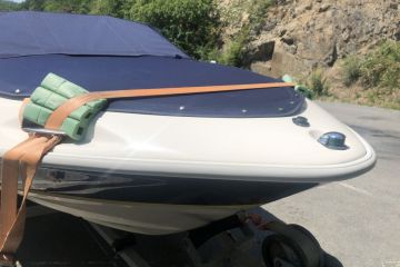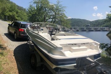 Hbitý udržovaný motorový člun pro 8 lidí je v bezvadném stavu po sezonním servisu. Loď (5,6m délka a 2,4 šířka) s platnou technickou prohlídkou je z roku 2006, téměř nový motor má najeto 15 mth. Trup FastTrack perfektně drží na vodní hladině i v náročnějších podmínkách. Nové krycí plachty, nový propeler, nové náplně. CD, radio, typovaná na vodní sporty. Celkově nenáročná na provoz, snadná na převoz. Včetně vleku.