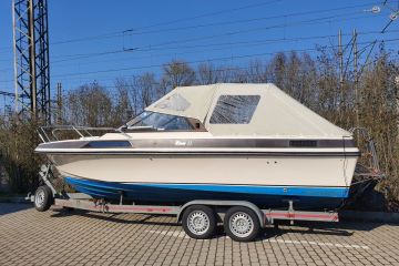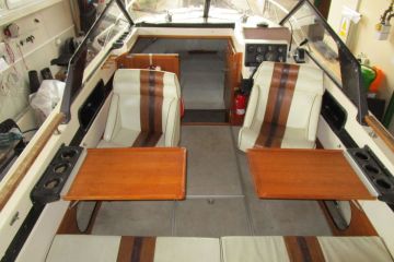 motorový kajutový člun pro 8 osob,kajuta nově čalouněná včetně nových matrací,3 lůžka v kajutě, WC s odpadní nádrží,kuchyňka, lihový vařič, dřez,venkovní sprcha,LED televize, rádio, 6x repro, LED osvětlení interieru, nový akumulátor 230Ah,smart nabíječka a odpojovač s bluetooth, palivová nádrž 350L,motor MerCruiser 8V 230Hp, převodovka AlphaOne po výměně ložiska, křížů, impeleru. Velmi dobrý stav.