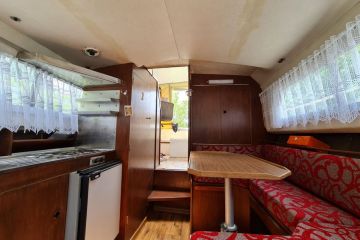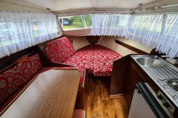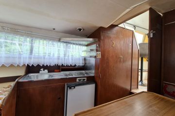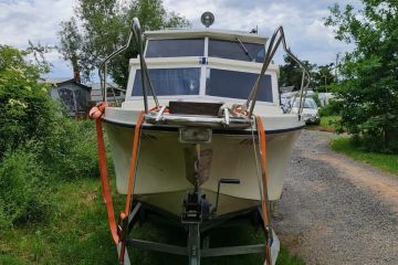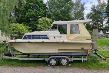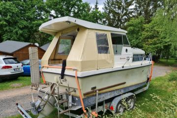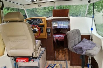s motorem VW Passat CL32B (1991) s výkonem 80kW. Člun je z roku 1979 ve výborném stavu s minimální spotřebou cca 2l na hodinu. Nove matrace a potahy. Po kompletním servisu. Dvounápravový vlek v ceně. Registrováno SPS Praha. K viděni Orlická přehrada. WC, kuchyň, kotvy, fendry a další drobna výbava součásti lodě.
