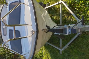Prodám novou kajutovou laminátovou loď India 431, délky 4,3m a šířky 1,7 m, pro 4 osoby. Přední a zadní držák kotvy, schůdky do vody. Na palubě 3 uzamykací boxy s polstrovanými podsedáky na sezení. Kajuta na pohodlné přespání pro 2 osoby s matracemi. Včetně nové baterie a elektroinstalace - LED osvětlení kajuty, centrální odpojovač, zásuvka na 12V + panel s další zásuvkou 12V a 2xUSB zásuvkami, měřičem napětí baterie. Střešní poziční světlo 360 st. Střešní okno se stínící roletkou. Vyrobena v roce 2022, stav nové lodě, pouze vyzkoušena. Loď je ošetřena nano antifoulingem Nanobala. Spasovaná s novým japonským motorem Tohatsu 20 HP (14,7 kW) - postačuje průkaz vůdce malého plavidla s omezením do 20 HP (pouze teoretické zkoušky). Dálkové ovládání u volantu. Loď i motor registrovány na Státní plavební správě, technická prohlídka platná 10 let, do roku 2032. Včetně nového přívěsu Martz poprvé registrovaného v roce 2022. Přenechám s povinnou výbavou lodě. Ihned připraveno na vodu. Bohužel nastala změna plánů. Cena 249 000 Kč.