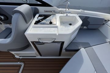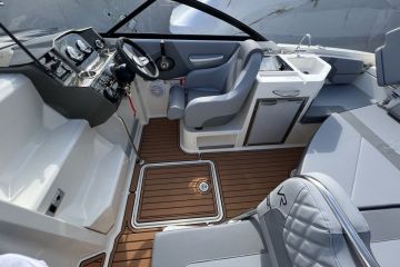 - PREFERRED EQUIPMENT PACKAGE W/O CARPET (Stainless Steel Pack / Blue LED Lights in Stainless Steel Cupholders / Porta Potti (chemical toilet)/ Cockpit Carpet Runners / chrom paket + modré LED podsvícení držáku na pití + chemická toaleta + teak stůl