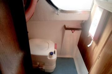 Ve vybavení je malá kuchyňská linka se dřezem a chemický záchod. V kajutě se pohodlně vyspí 2 dospělí a malé dítě.
