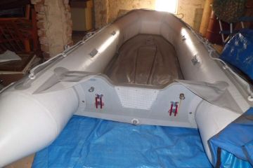 Člun kategorie C, překližková skládací podlaha s nafukovacím kýlem. Délka 400cm., šířka 190cm., průměr válce 50cm., výška zrcadla 39cm., počet osob 6, max. výkon motoru 30Hp. Zakoupen v 10.2015, takže používán tři sezony, jedenkrát lepený v podlaze ne ve válci, lata drží, neteče. Člun je registrován u SPS Přerov a je celoročně skladován v nafouknutém stavu, viz foto. Původní cena 27290,- Kč, prodávám za 15000,-Kč.