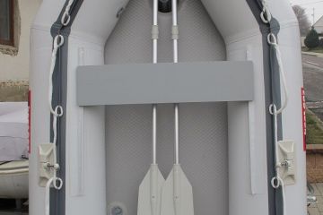 Nafukovací člun KIB 250 s vesly a možností připojení závěsného motoru až 5hp. Vysokotlaká podlaha, šedá barva, délka 250cm, šíře 151cm. Člun je ve stavu nového, pouze 1x předvedený na vodě. Lehký, rychle sestavitelný a odolný člun nejen pro rybáře. Možnost dodání i s motorem do 5hp, bez nutnosti registrace a VMP. Tel.: 00420 608070180, seckap@seznam.cz Původní cena 16000,- nyní pouze 12950,- Kč.