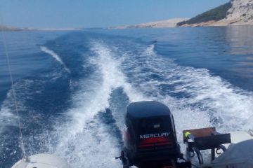Prodám gumový člun QUICKSILVER 430 s dřevěnou podlážkou, motor Mercury 30 2t. Délka 4,3 metru.