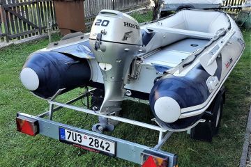 HONWAVE MX 350/0AL T35-AE2, DÉLKA 3.53M, MOTOR HONDA 20PS, PŘÍVĚSNÝ VOZÍK S SPZ, VOZÍK TÉMĚŘ NEJETY, CCA 20KM, ČLUN JE VELICE ZACHOVALÝ, ALU PODLAHA SKLADACÍ, 3NAFUKOVACÍ KOMORY PLUS PODLAHA, LAVIČKA, KOTVA, BOJKA, MANOMETR, NAŠLAPOVACÍ PUMPA, PADLA, NADRŽ, VŠE PLNĚ FUNKČNÍ, NIKDY NEJETO NA MOŘI, POUZE JEZERA , , REGISTROVANY, PRŮKAZ, CENA S VOZÍKEM 95TIS, MA SPZ, TECHNICKÝ PRUKAZ, PLATNÁ STK, VÍCE INFO EMAILEM NEBO TELEFONICKY