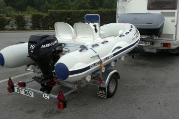 Max. výbava a příslušenství, včetně : 3x kotva, echolot, záchranné vesty, 2019 oba nové akumulátory, přívěs s elektrickým navijákem a další, stav perfektní, bez nutných investic. Možné táhnout i za malým autem