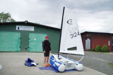 Oplachtěný gumový nafukovací člun Dinghy G S - 3 krát na vodě! Délka 220 cm, celková váha 52 kg, ve dvou brašnách. Uskladněn v loděnici, zavěšený v nafouknutém stavu. Vyroben v Holandsku a zaslán do rep. v dubnu 2016. Příslušenství - vesla, plachta, trojdílný skládací stěžeň, ploutev, kormidlo, nožní pumpa, 3 vodotěsné komory.