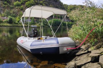 Prodám nafukovací člun s motorem Tohatsu 5. Není potřeba průkaz vůdce mal. plavidla. Motor i člun udržovaný ! + bimini + příd.pal. nádrž + vesla + přepravní taška + vesty.
