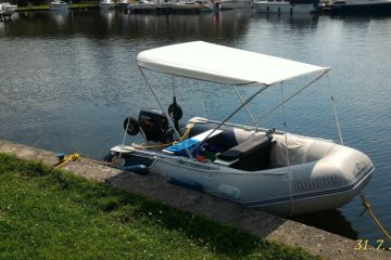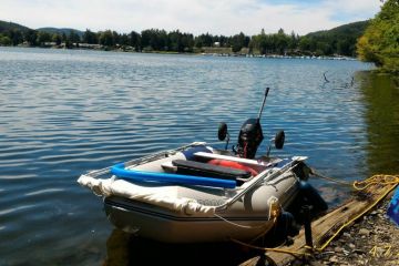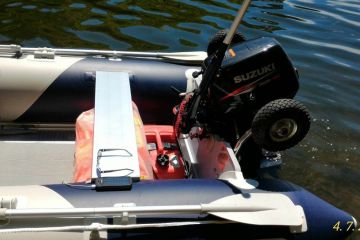 Velmi málo použitý gumový člun s hlinikovou podlahou 3 komorový jako nový r.v. 2016.Složený se vejde do kufru auta. Závěsný motor Suzuki DF 15 (čtyřtakt)r.v.2010 pravidelně servisovaný. Vše zaregistrováno na SPS Přerov.Platnost osvědčení do6.6.2022.
