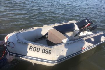 Nosnost člunu 735 kg, pro závěsný lodní motor až 15 hp. S mým motorem Selva Naxos 5XS (15hp) byl okamžitě ve skluzu.