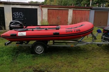 Prodám nafukovací člun, 390 cm, Al RIB dno, motor Mercury 25, vlek. Jenom jako komplet. České papíry, 1 rok v provozu.