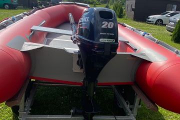 Prodám nafukovací člun Bush F40 s 20Hp motorem Suzuki. Člun prodáváme komplet jak je na fotkách (člun + motor + vozík). Vše kupované nové (první majitel), vždy od září do května garážované, pravidelně každoročně servisované, používané pouze na Slapech. Součástí člunu - pádla, nafukovací pumpa, 2x posuvná lavička, nádrž na benzin, kotva, světlo, zámek proti krádeži na motor a vozík. Top stav.