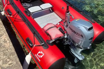 Prodám nafukovací člun Zodiac Futura Mark 2 se skládací alu podlahou o délce 380 cm, r. v. 2016 + závěsný motor Honda 40 hp s el. startem a el. trimem, krátkou nohou r. v. 2021.