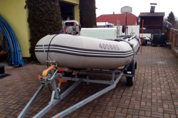 prodám člun nafukovací pevná podlaha hliník motor Mercury 25 four +vozík