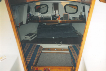Prodám plachetnici Kačorek s pevným kýlem v bezvadném stavu s podvozkem (aktuálně s propadlou STK), délka 4,5 m, šířka 1,8 m, plocha plachet 10 m2. Plachetnice vzhledem k parametrům nepodléhá registraci (není třeba průkaz vůdce plavidla). Snadná manipulace s podvozkem a spouštění na vodu, kajuta má dvě lůžka pro dospělé a dostatek úložného prostoru