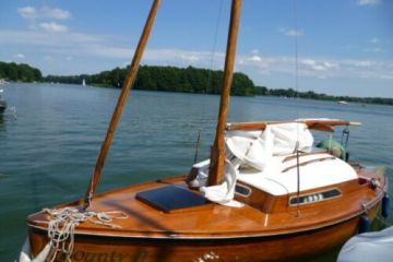 Nabízím celodřevěnou plachtenici - jolový křižník. Délka lodi 6,5m, hmotnost 500 kg., mahagonvé dřevo. Stěžeň a dřevěné přední ráhno v novém laku. S dakron plachtami komplet dřevěnou takeláží. Je to opravdu krásný exemplář, potřebuje jen trochu opravit žebra, obšívky, utěsnění pod čárou ponoru a trup (poškodil se při převozu, viz. foto). Lodní vlek není součástí prodeje. V případě zájmu si prosím vyžádejte další informace prostřednictvím sms na tel. 704 072 461. Děkuji.